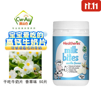 贺寿利(Healtheries) 新西兰成人中老年青少年学生羊奶粉 450g 奶片 香草味 50粒/瓶