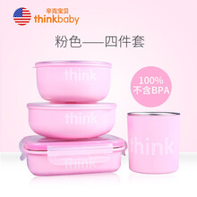 辛克宝贝美国Thinkbaby宝宝餐具304不锈钢儿童餐具套装带餐盒 水杯4件套 粉红色