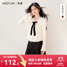 西遇(Westlink)v领针织开衫女2025年冬季新款小香风蝴蝶结木耳边毛衣外套 米白色 付款15天预售 M (160) 付款15天预售