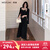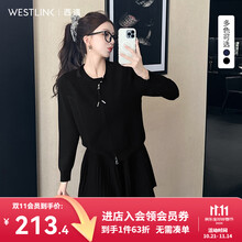 西遇(Westlink)长袖针织连衣裙女2025年冬季新款小香风拼接袖修身内搭长裙 黑色 付款15天预售 S (155) 付款15天预售