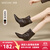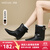 西遇(Westlink)尖头裤管靴女2025新款秋冬法式复古皮带扣单靴猫跟黑色短靴子 黑色 预售11月12日 35 (225)