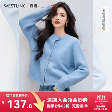 西遇(Westlink)韩系针织开衫女2025年冬季新款圆领百搭温柔风显瘦毛衣外套 蓝色 付款15天预售 M 付款15天预售