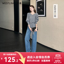 西遇(Westlink)V领收腰绑带针织衫女2025年冬季新款法式显瘦设计感毛衣 灰色 付款15天预售 M (160) 付款15天预售