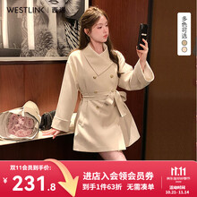 西遇(Westlink)高领短款风衣外套女2025年冬季新款富家千金收腰双排扣大衣 短款米白色(SS051795) 付款15天预售 L 付款15天预售