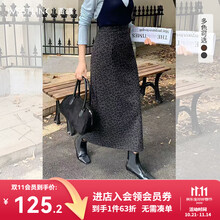 西遇(Westlink)豹纹a字半身裙女2025年冬季新款复古辣妹高腰后开叉中长裙 灰色 付款15天预售 S (155) 付款15天预售