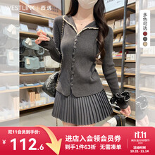 西遇(Westlink)拼接v领针织衫女2025年冬季新款半开领设计感纽扣毛衣外套 灰色 付款15天预售 M (160) 付款15天预售