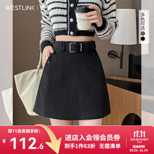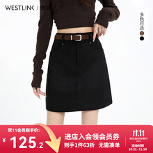西遇(Westlink)毛呢a字短裙女2025年冬季新款高腰防走光纽扣口袋半身裙 黑色 付款15天预售 S (155) 付款15天预售