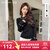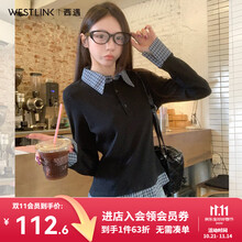 西遇(Westlink)黑色长袖T恤女2025年秋冬新款polo领拼接假两件打底衫 黑色 付款15天预售 S (155) 付款15天预售