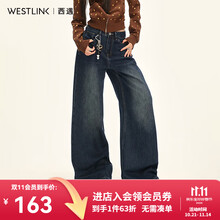 西遇(Westlink)美式复古牛仔裤女2025年冬季新款高腰直筒宽松水洗加绒阔腿裤 蓝色 付款15天预售 S (155) 付款15天预售
