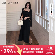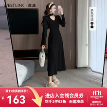 西遇(Westlink)法式长袖针织连衣裙女2025年冬季新款V领收腰显瘦内搭长裙 黑色 付款15天预售 S (155) 付款15天预售