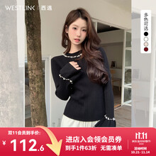 西遇(Westlink)毛衣可外穿内搭女2025年冬季新款钉珠圆领喇叭袖打底毛衫 黑色 付款15天预售 M (160) 付款15天预售