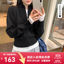 西遇(Westlink)立领短款毛衣外套女2025年冬季新款纯色百搭设计感针织衫 黑色 付款15天预售 M (160) 付款15天预售