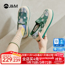 快乐玛丽(J&M)乐福鞋女2023春夏新款百搭休闲女鞋厚底透气一脚蹬单鞋女 绿色 35 225mm