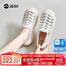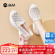 快乐玛丽(J&M)单鞋女平底布鞋2025春夏新款女休闲一脚蹬女鞋懒人浅口透气百搭 米白色 35 225mm