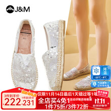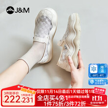 快乐玛丽(J&M)渔夫鞋女单鞋2025春夏新款小香风镂空透气一脚蹬厚底休闲帆布鞋女 米白色 37 235mm