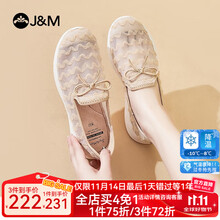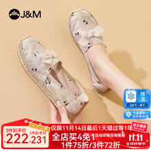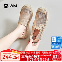 快乐玛丽(J&M)渔夫鞋女2023春夏新款单鞋女士麻底一脚蹬女鞋镂空透气休闲帆布鞋 杏色 38 240mm