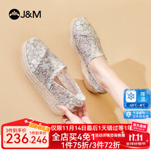 快乐玛丽(J&M)单鞋女士渔夫鞋2025春夏季新款平底镂空网面布鞋一脚蹬透气女鞋 银色(5328W) 35 225mm