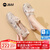 快乐玛丽(J&M)凉鞋女士夏季2023年新款平底运动一字带网面透气沙滩鞋女海边休闲 米色(偏小建议拍大一码) 36 230mm