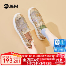 快乐玛丽(J&M)乐福鞋女士单鞋2023春夏新款一脚蹬女鞋厚底百搭休闲增高镂空蕾丝 金色 35 225mm