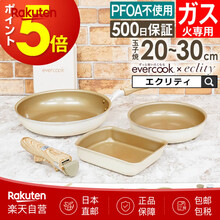 evercook不粘锅5件套煎锅套装含手柄平底锅 适用于电磁炉 日本直邮 象牙白手柄