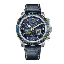 西铁城(CITIZEN) 蓝天使二代多功能多局电波对时钢带时尚休闲夜光日历男表 蓝天使二代JY8078-01L