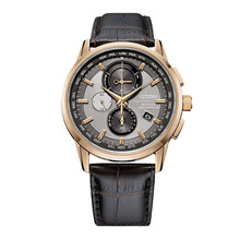 西铁城(CITIZEN)男士光动能多局电波自动对时牛皮表带休闲时尚日历男表送男友礼物 AT8113-12H