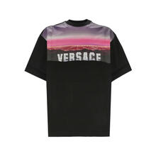范思哲(VERSACE)男士短袖圆领图案T恤舒适透气棉质休闲款 黑色 均码 |XS