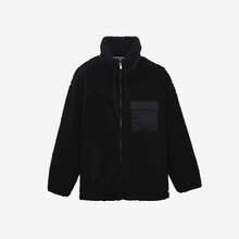 AIGLE艾高外套 宽松混合面料 柔软保暖 舒适防风女士抓绒衣 黑色/NOIR 2XL