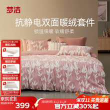 梦洁家纺冬季加绒保暖牛奶绒印花三件套 瑞贝卡(粉)1.2m(150×200)