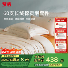 梦洁家纺 100%棉60支长绒棉贡缎套件床单被套长绒棉刺绣床上四件套 一树金 200*230cm
