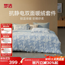 梦洁家纺 冬季加厚保暖磨绒床单被套220G仿雕花暖绒床上四件套 梧桐影(星蓝) 220*240