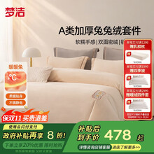 梦洁家纺 床品牛奶绒床单被套加厚磨绒抗静电短兔绒素绣床上四件套 龙腾中国(杏)200*230cm