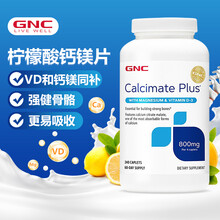 健安喜(GNC)钙片 柠檬酸钙镁+维生素D3天然珊瑚钙孕妇青少年中老年人高钙片 柠檬果酸钙240片