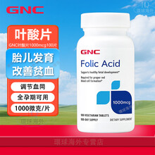 健安喜(GNC)叶酸片folic Acid女性备孕维生素B9促进胎儿发育改善贫血美国进口 1000mcg/100粒