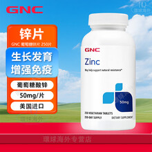 健安喜(GNC)锌片 30mg葡萄糖酸锌片Zinc成人儿童缺锌补锌男士备孕美国进口 锌片50mg/250片