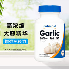 NUTRICOST大蒜油软胶囊大蒜素精华无异味呵护心脑血管血脂免疫力美国进口 大蒜精油胶囊1000mg240粒