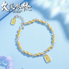 JIUXIYINLOU久溪银楼足银999描金麻花纯银手链新中式平安喜乐招财纳福送女友 约12.5克-15cm+5cm延长链