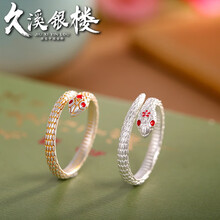 JIUXIYINLOU久溪银楼足银9999十里桃花灵蛇银戒指纯银送女友生肖本命年礼物 古法灵蛇戒指(约2.3克-开口可调节)