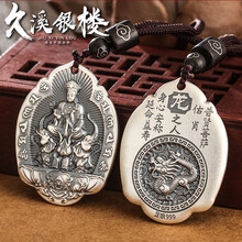 久溪银楼999足银吊坠十二生肖本命佛银牌实心八大守护神佛牌项链 吊牌-重约22克