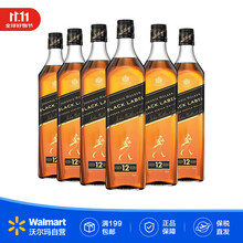 尊尼获加JOHNNIE WALKER 黑方12年苏格兰威士忌调和型 1000mL 无盒 6瓶【沃尔玛】