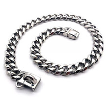 AYOUA 宠物不锈钢项圈狗链脖套中大型犬恶霸犬金项链项圈法斗杜宾马犬 钢色 宽15MM*长60