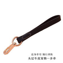 AYOUA牛皮牵引绳狗链短牵中大型犬遛狗绳项圈金毛德牧马犬近身随行训练 黑色 牵引绳加大型犬项圈套装