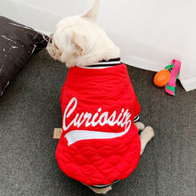 金豫达秋冬款狗狗猫咪字母刺绣棉衣潮牌宠物衣服法斗英短夹克小狗猫服装 红色 M