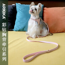 ARKIKA新款彩钻牵引绳胸背小型犬狗链子马尔济斯约克夏泰迪遛狗绳比熊 彩虹粉 S:(胸围31-44cm)