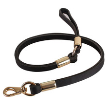 AYOUA狗狗牵引绳大型犬狗链子狗项圈狗绳子双层牛皮金毛拉布拉多遛狗绳 黑色 牵引绳加中型项圈套装