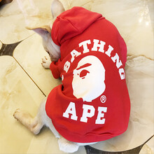 金豫达新款法斗衣服宠物服装法牛八哥泰迪猫咪衣服休闲印花连帽潮两脚衣 红色 S
