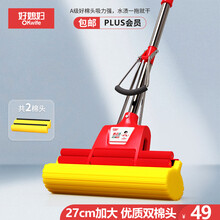 好媳妇(okaywife)胶棉拖把27cm共2个头 双滚轮挤水海绵地拖墩布懒人擦地拖地神器