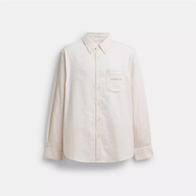 蔻驰(COACH)男衬衫 2025新款条纹直筒裁剪商务休闲通勤正装日常打底长袖衬衣 米白条纹Neutral Stripe S