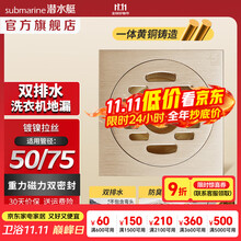 潜水艇(Submarine)黄铜防臭地漏套装卫生间干区淋浴大排量洗衣机长条隐形全铜主体 【真.黄铜】卫生间-干区地漏